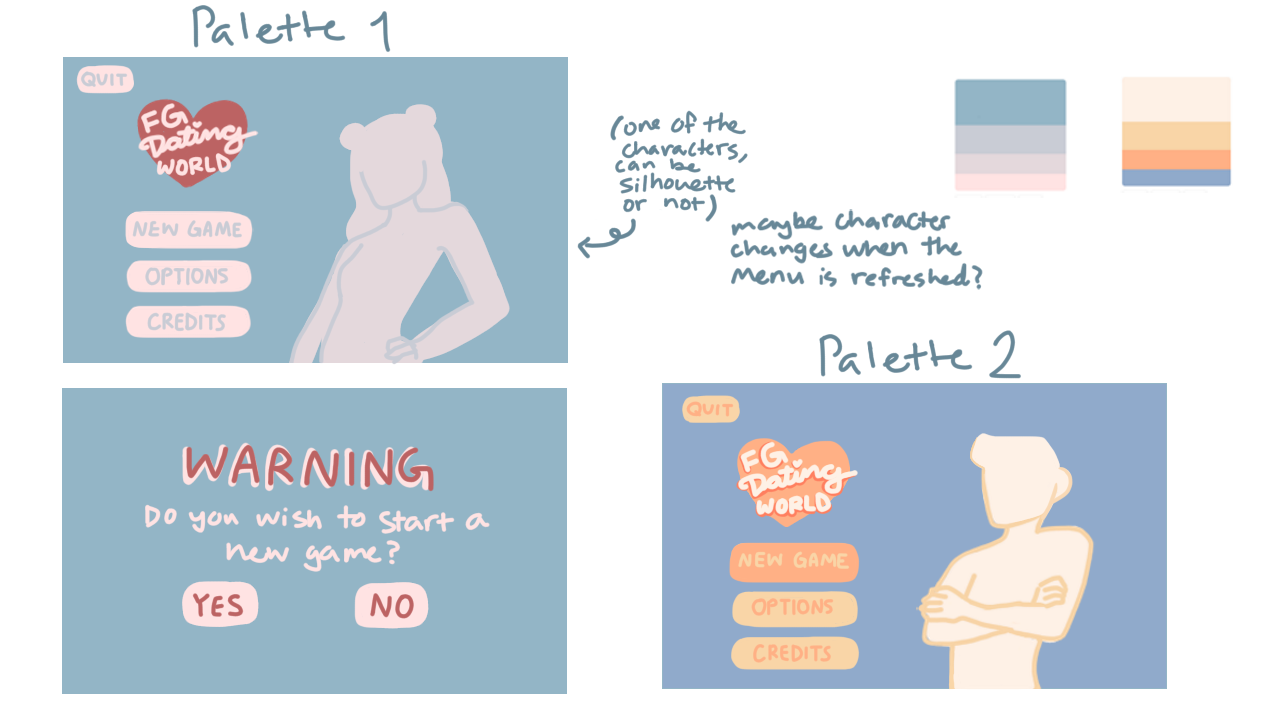 While working at Ferry Godmother Productions, I created a few background images and menu concepts for their upcoming video game dating simulator.